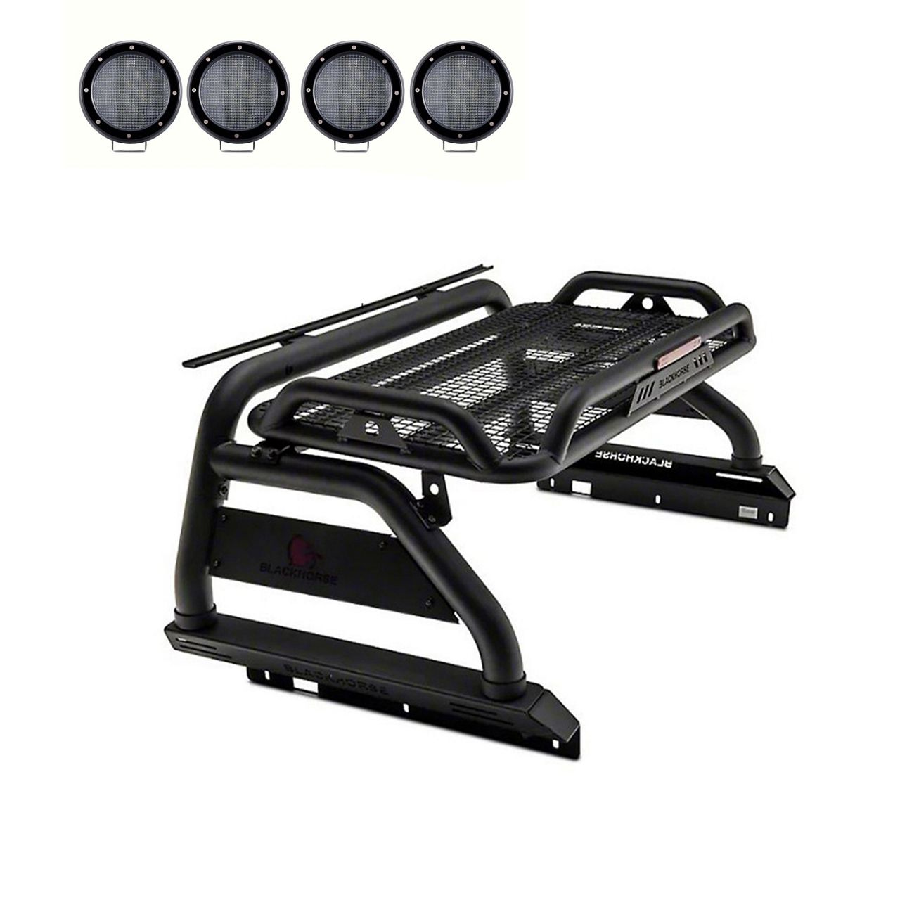 Top-Notch Functionality. The Atlas Roll Bar is designed to provide excellent support and protection for your truck bed. It comes equipped with two 5.30-inch black round flood LED lights, ensuring enhanced visibility and safety during nighttime driving or off-road adventures. The roll bar is built to withstand heavy loads and can hold up to 150 pounds of cargo, making it ideal for carrying equipment, tools, or accessories.