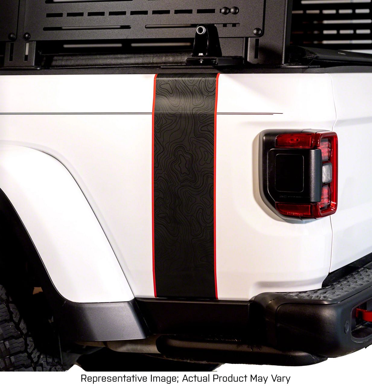 Application. This Topographic Map Bedside Stripe Graphic fits all 2020-2026 Jeep Gladiator JT models.