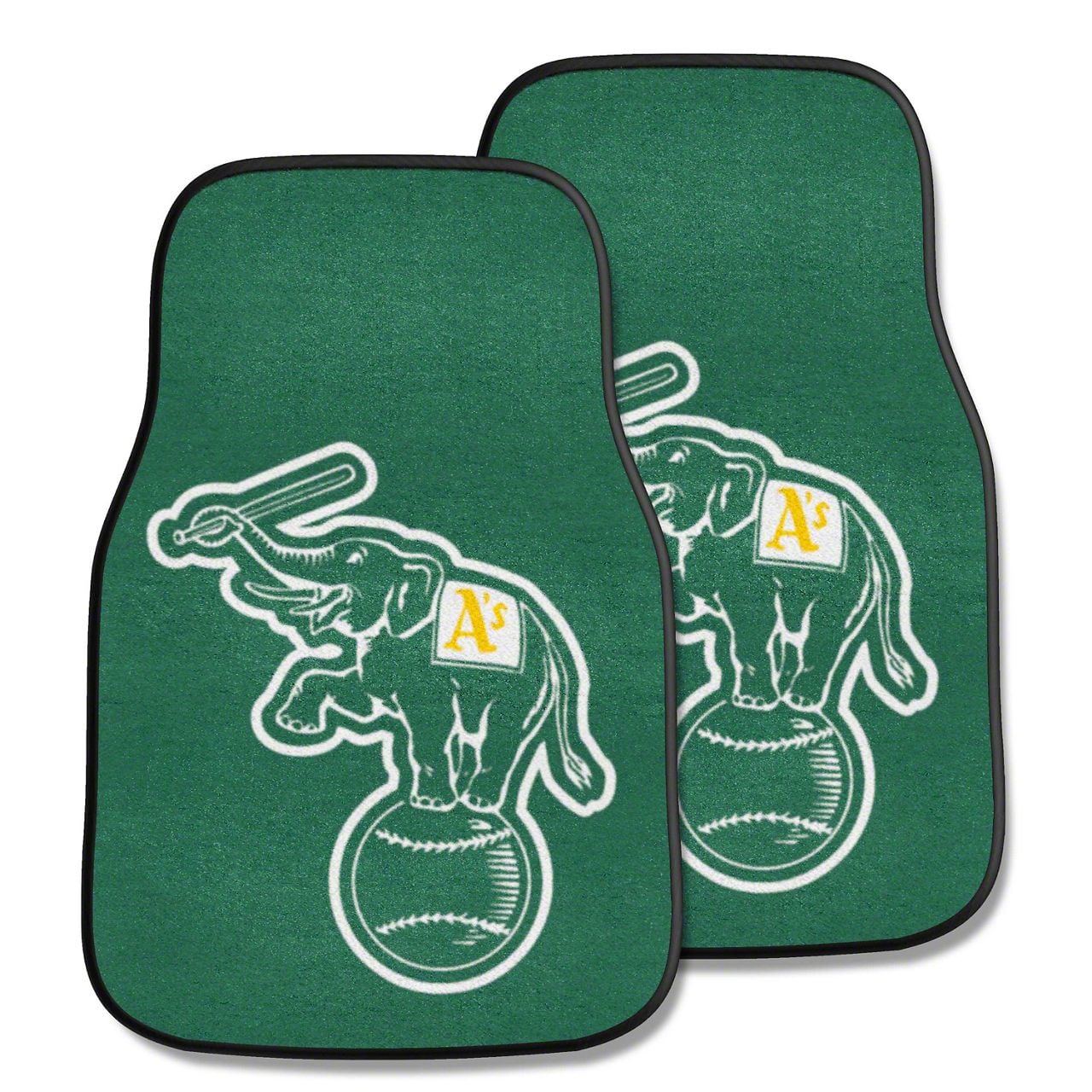 Carpet Front Floor Mats with Oakland Athletics Elephant Logo; Green (Universal; Some Adaptation May Be Required)