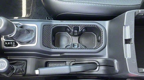 Application. The Center Console Cup Holder Accent Trim; Domed Carbon Fiber fits 2020-2025 Jeep Gladiator JT models.