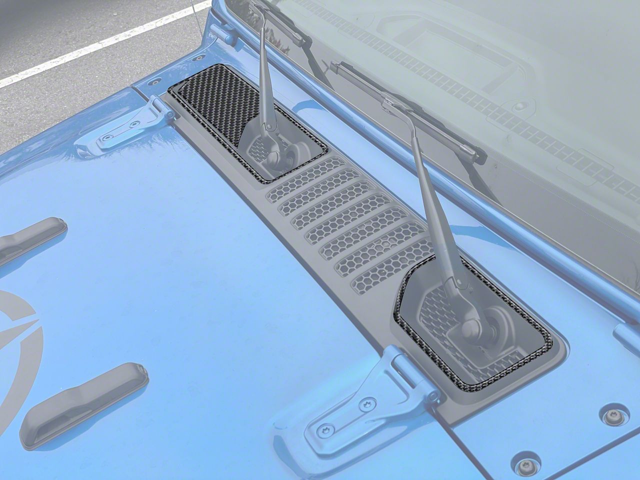 Stylish Protection. The Center Cowl Accent Trim (Forged Carbon Fiber) is designed to enhance the look and protection of your Jeep Gladiator JT's cowl area. This 2-piece kit installs easily and provides a sleek, modern touch to the sides of the cowl, protecting against scratches and debris while elevating the overall appearance of the vehicle.