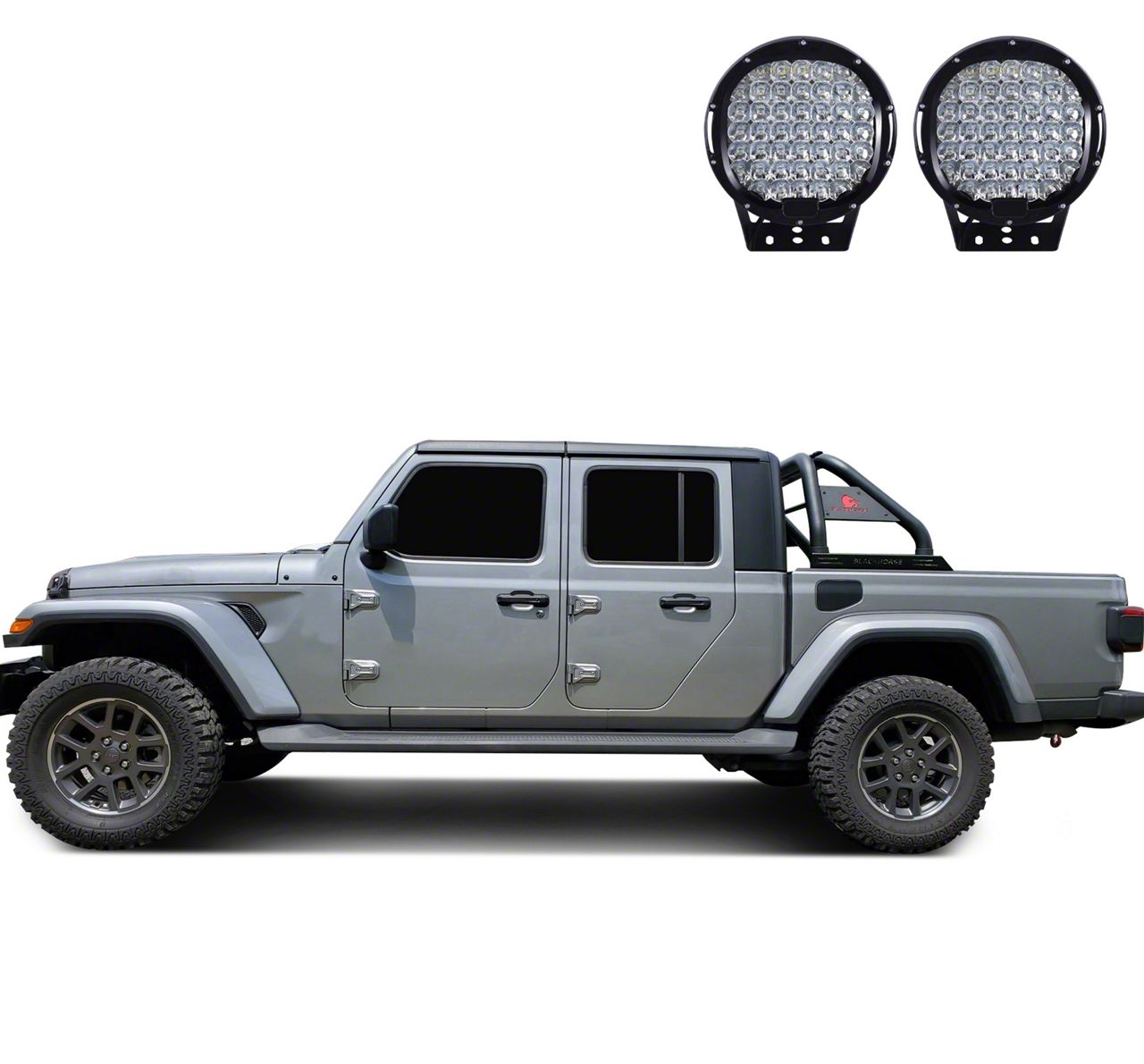 Application. The Classic Roll Bar for Tonneau Cover with 9-Inch Black Round Flood LED Lights fits 2020-2026 Jeep Gladiator JT models.
