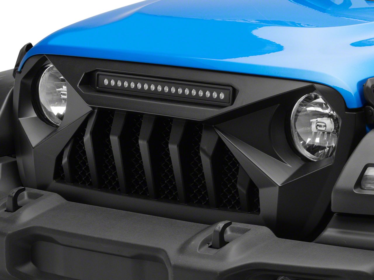 Strong Rugged Look. Show off the power and beauty of your Jeep Gladiator with this American Modified Demon Grille with LED Off-road Lights; Matte Black. Sporting strong lines and aggressive shapes, it adds a meaner feel to your ride, elevating its looks while also protecting your front rad.