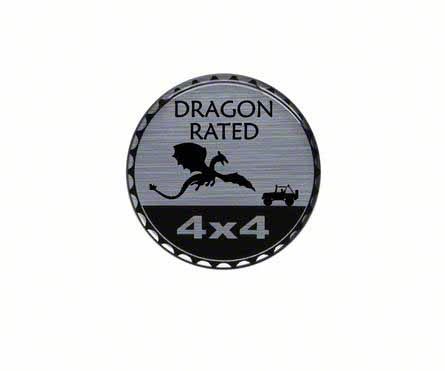 Jeep Versus Dragon. Do you think your Jeep is tough enough to face a fiery dragon? Put your pride in your Jeep on display with the Dragon Rated Badge. This rated badge features a flying dragon and a Jeep facing each other, a definite conversation piece for any Jeep or dragon fan.