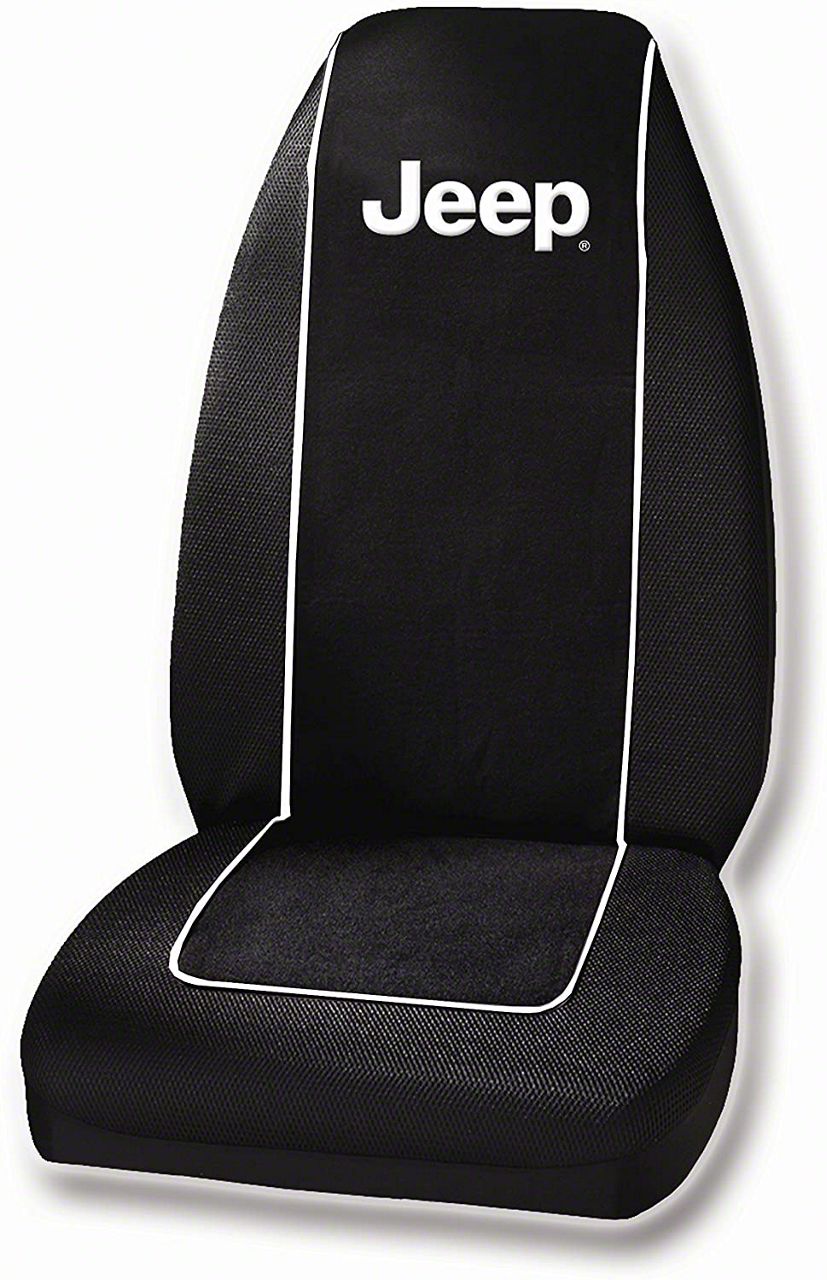 Jeep Pride. Keep your seats well protected from the elements with the Embroidered Seat Cover with Jeep Logo. This embroidered seat cover offers a universal stretch fit, fully adhering to your seat’s contours for a snug fit. It is fully machine washable. Each seat cover is sold individually.