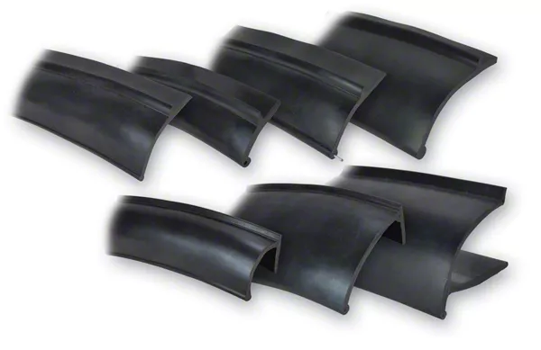 Comprehensive Sampling Kit. The Flexy Flare Rubber Fender Extensions Sample Pack provides a practical way to evaluate every design in the Pacer Flexy Flare line. This product includes a 6-inch sample of each universal rubber fender extension, enabling precise fit-checking for different vehicle styles. With this kit, users can eliminate guesswork and make informed decisions before committing to a full set.