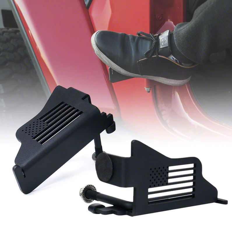 Celebrate Freedom on Every Drive. Elevate your driving experience with Front Foot Pegs adorned with the US Flag, bringing a touch of patriotic style to your vehicle. Designed for enthusiasts who love the open-air experience, these foot pegs easily install on front door hinges, enhancing your off-road adventures and daily drives with unmatched comfort.