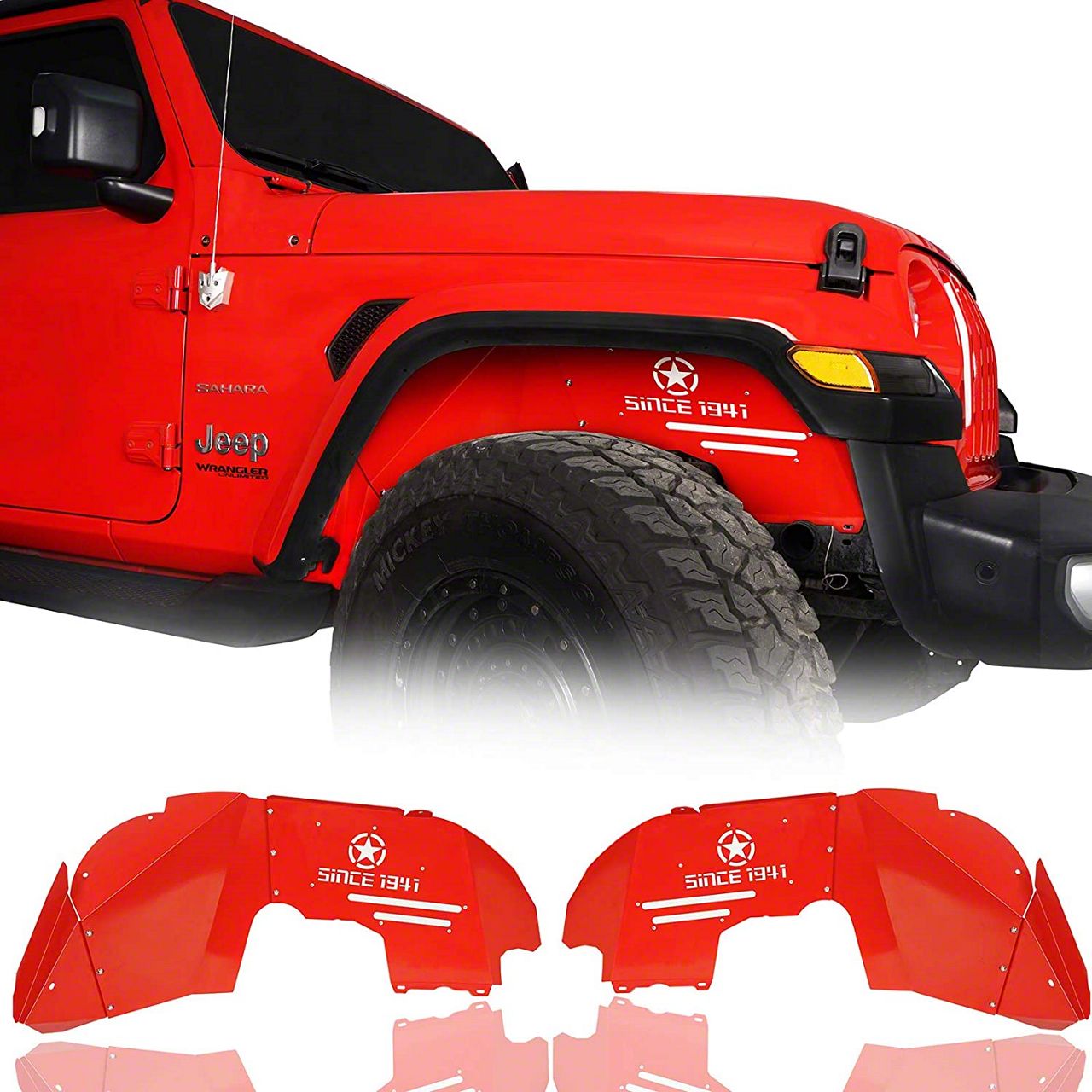 Solid Construction. These Jeep JL Inner Fender Lines Kit feature a solid steel construction that gives it exceptional durability ideal for rough off-road driving. A vivid glossy red powder coat finish is applied to give the inner fender liners increased resistance to corrosion and rust.