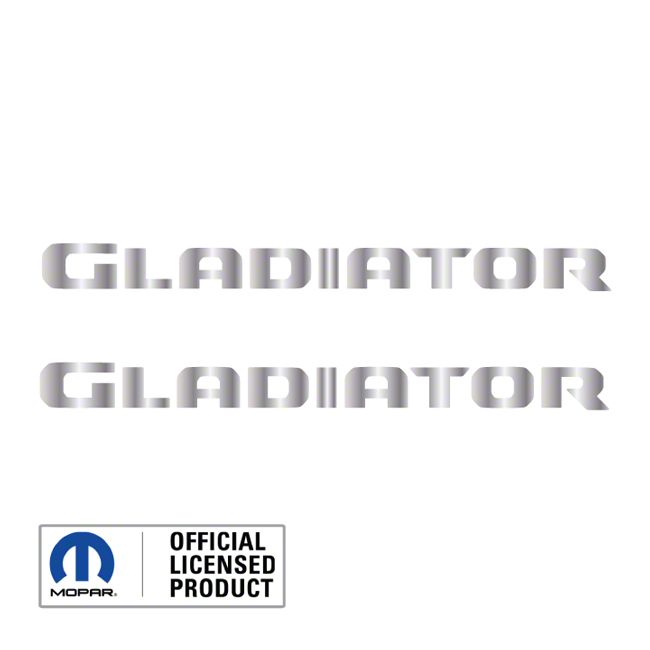 Custom Hood Accent. The GLADIATOR Hood Graphic offers a bold, aggressive look with metallic silver lettering that sets your Jeep Gladiator JT apart. Designed to complement the rugged styling of your truck, this decal adds a custom appearance while standing up to the elements.