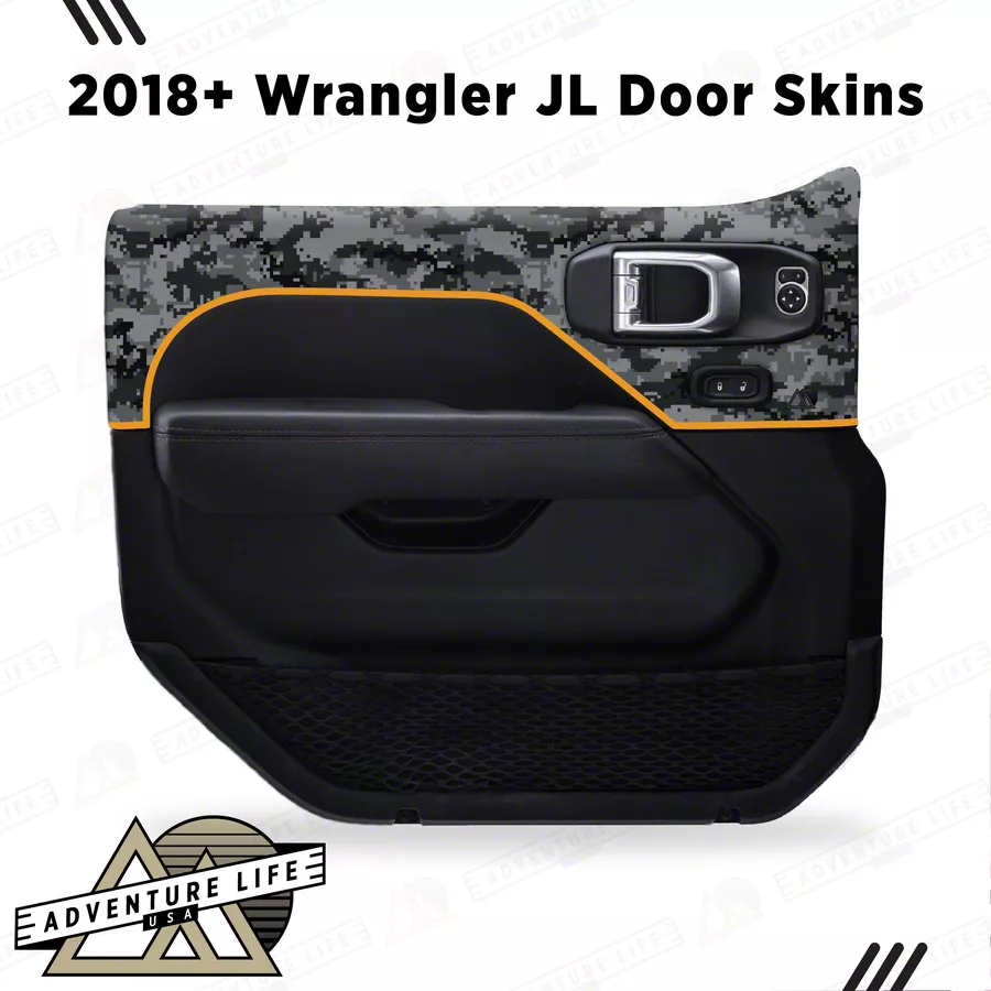 Upgrade your 2018+ Wrangler JL with Adventure Life’s Black Digital Camo Door Skins—the perfect blend of style and function. Made from premium automotive vinyl, these skins wrap flawlessly around your doors for a durable, weather-resistant shield against dirt, mud, and daily adventures. The matte or gloss finish provides a sleek, head-turning design that complements any off-road build.