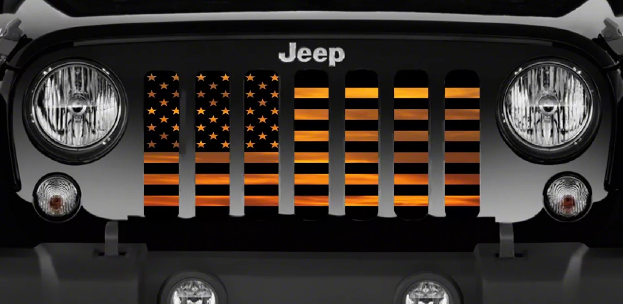 Personalize Your Jeep. This Grille Insert; American Orange Haze Flag will customize your Jeep Gladiator JT in your own way. Rest assured, it will not compromise the integrity of your grille. Your radiator and engine compartment still gets the proper airflow needed to perform.
