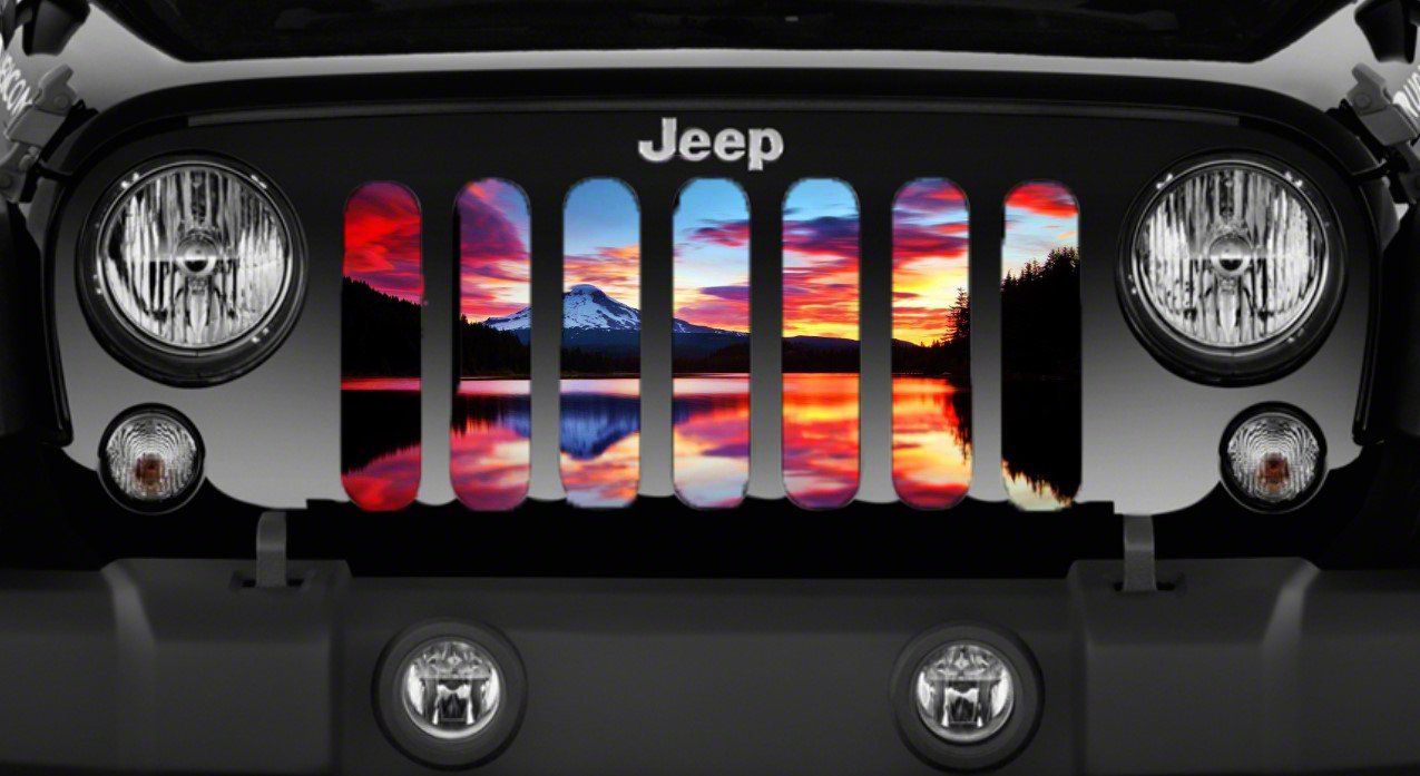 Personalize Your Jeep. This Grille Insert; Lake Sunset will customize your Jeep Gladiator JT in your own way. Rest assured, it will not compromise the integrity of your grille. Your radiator and engine compartment still gets the proper airflow needed to perform.