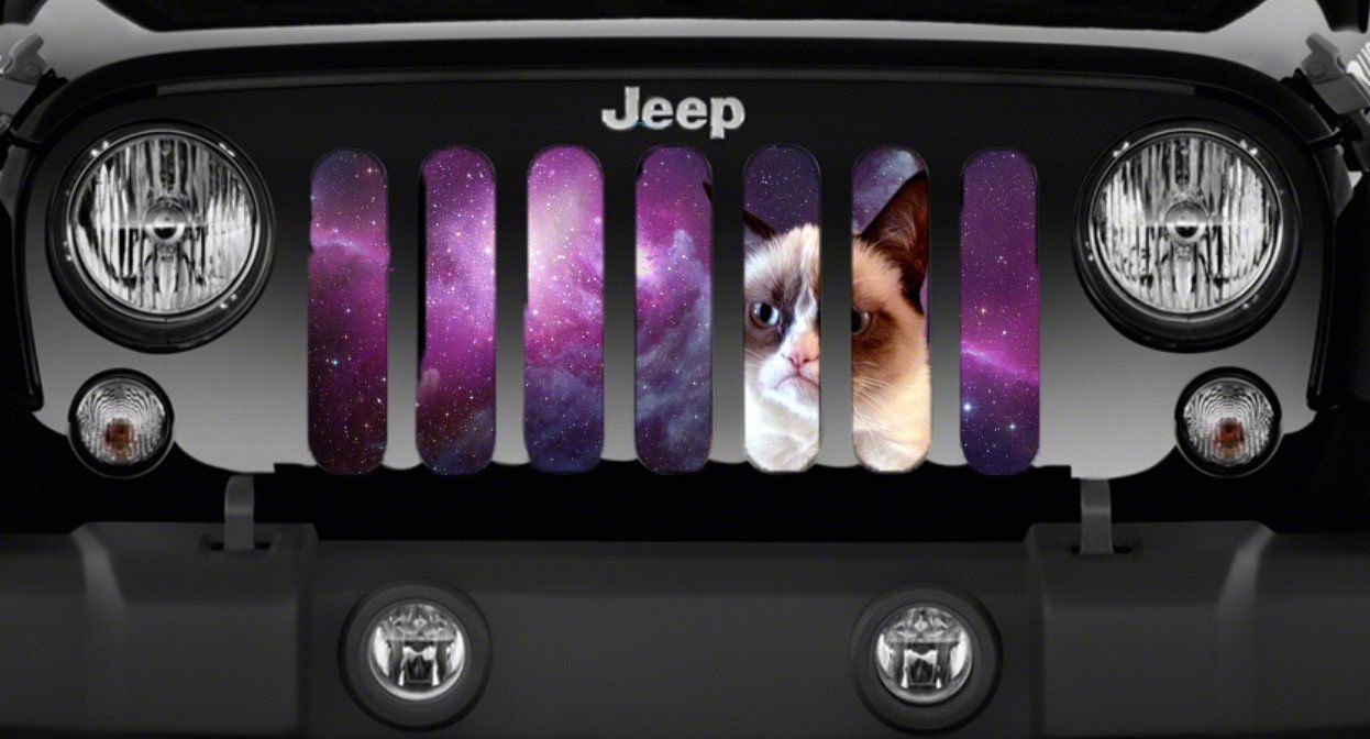 Personalize Your Jeep. This Grille Insert; Spaced Out Angry Cat will customize your Jeep Gladiator JT in your own way. Rest assured, it will not compromise the integrity of your grille. Your radiator and engine compartment still gets the proper airflow needed to perform.