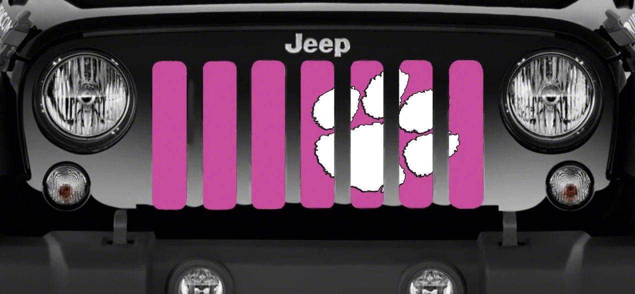 Personalize Your Jeep. This Grille Insert; White Tiger Paw Print Hot Pink will customize your Jeep Gladiator JT in your own way. Rest assured, it will not compromise the integrity of your grille. Your radiator and engine compartment still gets the proper airflow needed to perform.