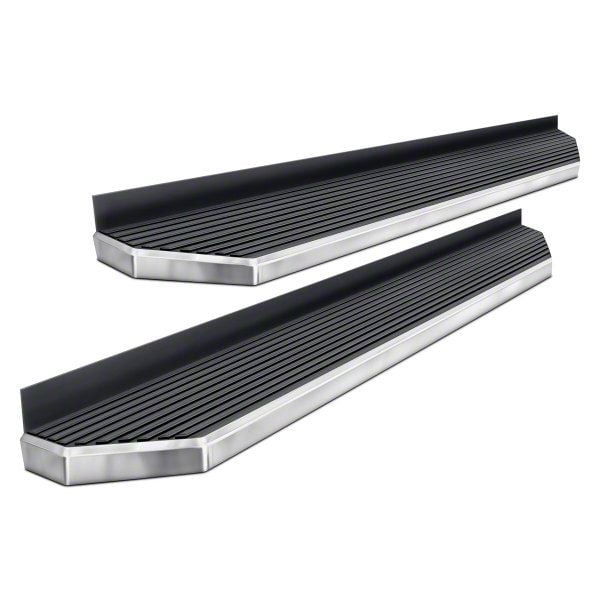 Construction and Appearance. Constructed with durable, lightweight aluminum, these running boards feature a polished finish for a bright, chrome-like look. The high-quality materials ensure long-lasting performance and resilience against the elements.