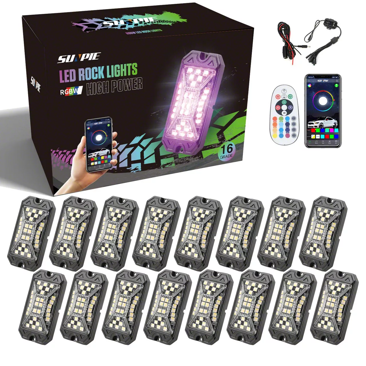 High Power Wide Angle Series RGBW LED Rock Lights; Set of 16 (Universal; Some Adaptation May Be Required)