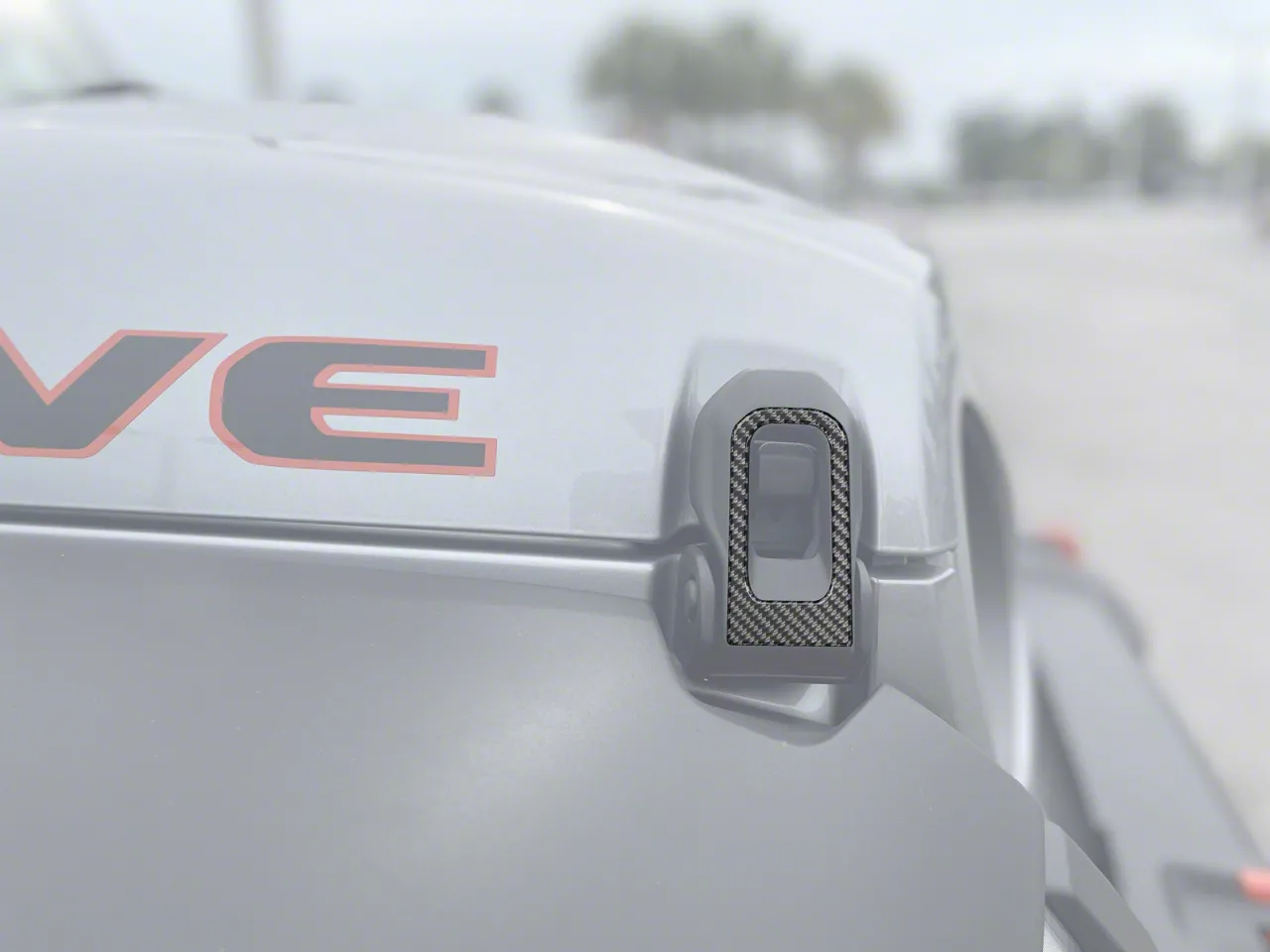 Upgrade Your Jeep's Front-End Style. The Hood Hinge Accent Trim adds a stylish and custom look to your Jeep Gladiator JT. Crafted from forged carbon fiber, it offers a high-end appearance while remaining lightweight and durable.