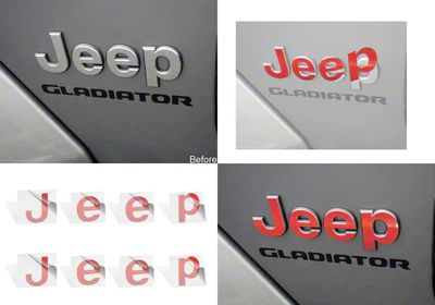 Application. The JEEP Fender Emblem Overlay Decals; Red fit 2018-2025 Jeep Wrangler JL models.