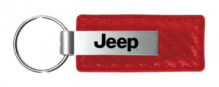 Description. Key Chain; Jeep Carbon Fiber Leather Key Fob; Red