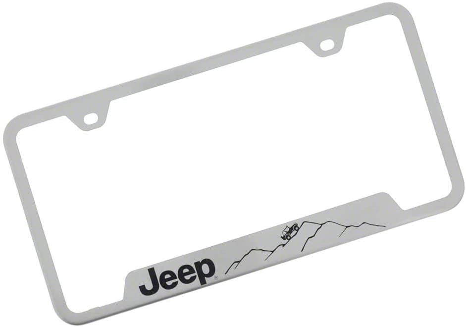Style in Strange Places. When it comes to style, don't forget everywhere. This Jeep Mountain License Plate Frame; Brushed Stainless will add some serious flair to your Jeep and it will do so in a place that separates itself from other trucks on the road.
