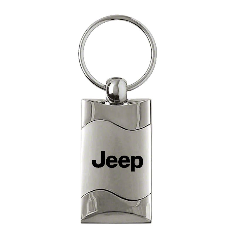 Sleek and Functional Key Fob. The Jeep Rectangular Wave Key Fob is designed for both style and practicality, offering a refined look while ensuring seamless key functionality. Its durable construction enhances reliability for everyday use.