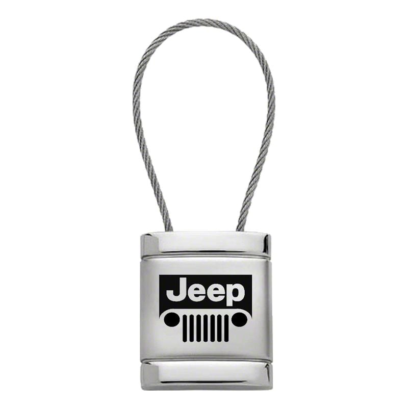 Description. Key Chain; Jeep Grille Satin-Chrome Cable Key Fob