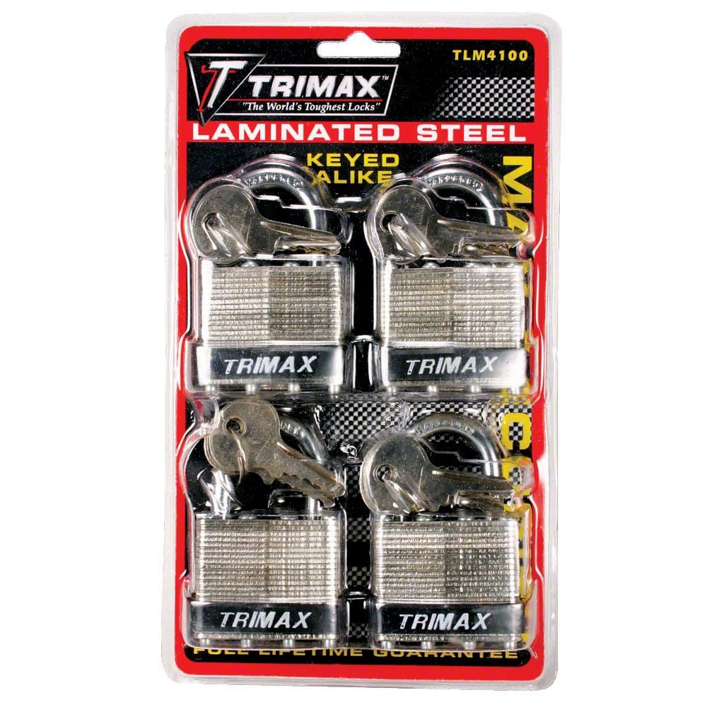 4 PACK OF KEYED ALIKE OF TLM100 SOLID STEEL LAMINATED PADLOCKS