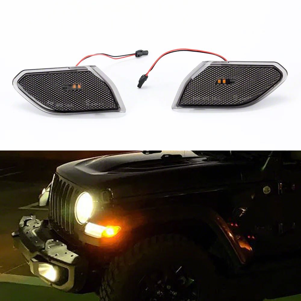 LIMITED APPLICATION. This pair of smoked LED side marker lights are specifically designed for 2018-2026 Jeep Wrangler JL/JLU 4xe & Jeep Gladiator JT Models. Driver side and passenger side included.