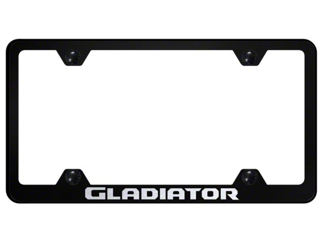 Stylish License Plate Frame. This Gladiator Steel Wide Body License Plate Frame comes with a stylish laser-etched Gladiator logo to help your Gladiator stand out. So say goodbye to the unattractive dealership and parts store license plate frames; instead, make your Jeep your own with this stylish replacement. This frame also features laser-cut edges and notched corners for a premium appearance that will perfectly complement the modern styling of your Jeep.