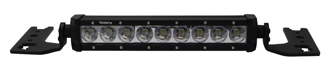 Solid Hood Light Bar Mount. Add a vibration-free hood mount to your Jeep using this Jeep Gladiator light mount, and create a sturdy location for a light bar. With this mount locked in position, you can easily add a 10-inch light bar and see on trails and other off-road conditions more effectively. This kit fits 2020-2026 Jeep Gladiator JT vehicles, and it installs using already existing mounting points. There’s no cutting, no drilling, and no special steps to get it to work.