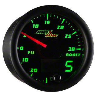 MaxTow 30 PSI Boost/Vacuum Gauge; Black and Green (Universal; Some Adaptation May Be Required)
