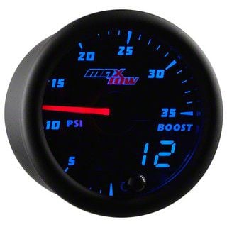 MaxTow 35 PSI Boost Gauge; Black and Blue (Universal; Some Adaptation May Be Required)