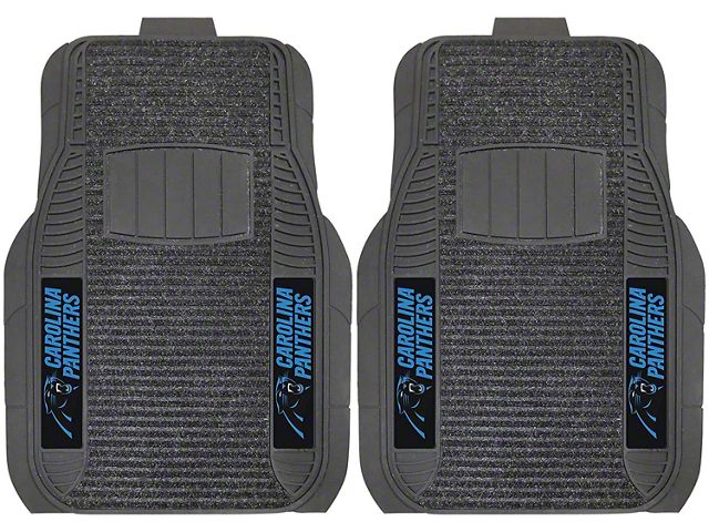 Application. These Molded Front Floor Mats with officially-licensed Carolina Panthers logo feature a universal design so they will fit most makes and models of vehicles. These Mats can be trimmed to fit if necessary. Sold as a set of two Mats.