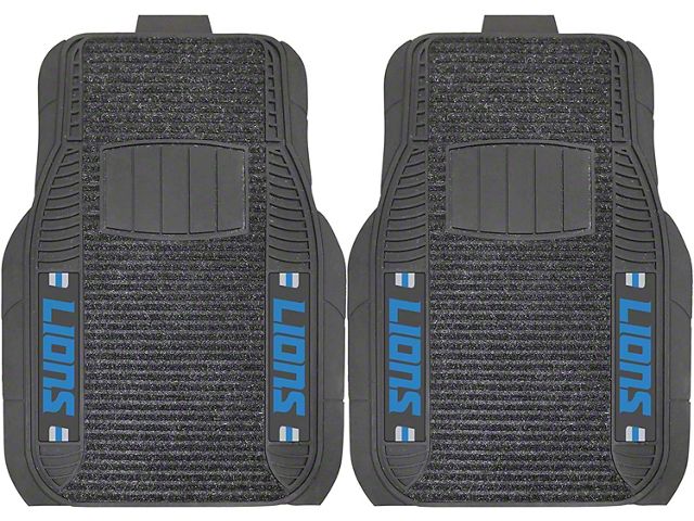 Application. These Molded Front Floor Mats with officially-licensed Detroit Lions logo feature a universal design so they will fit most makes and models of vehicles. These Mats can be trimmed to fit if necessary. Sold as a set of two Mats.