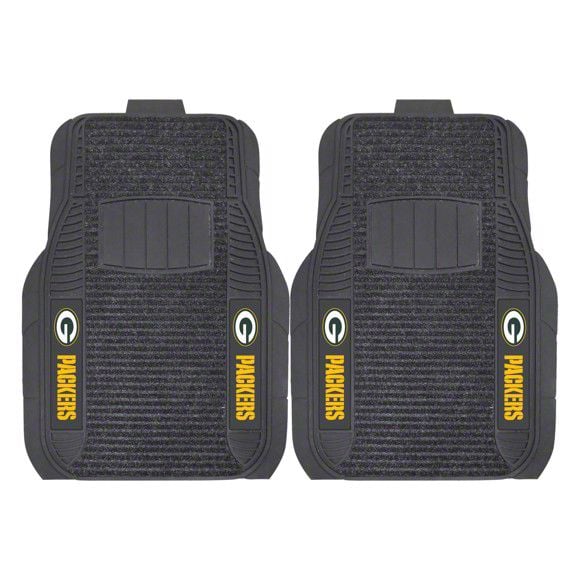 Application. These Molded Front Floor Mats with officially-licensed Green Bay Packers logo feature a universal design so they will fit most makes and models of vehicles. These Mats can be trimmed to fit if necessary. Sold as a set of two Mats.