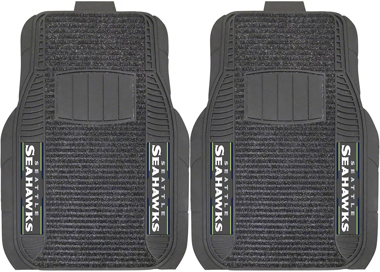 Application. These Molded Front Floor Mats with officially-licensed Seattle Seahawks logo feature a universal design so they will fit most makes and models of vehicles. These Mats can be trimmed to fit if necessary. Sold as a set of two Mats.