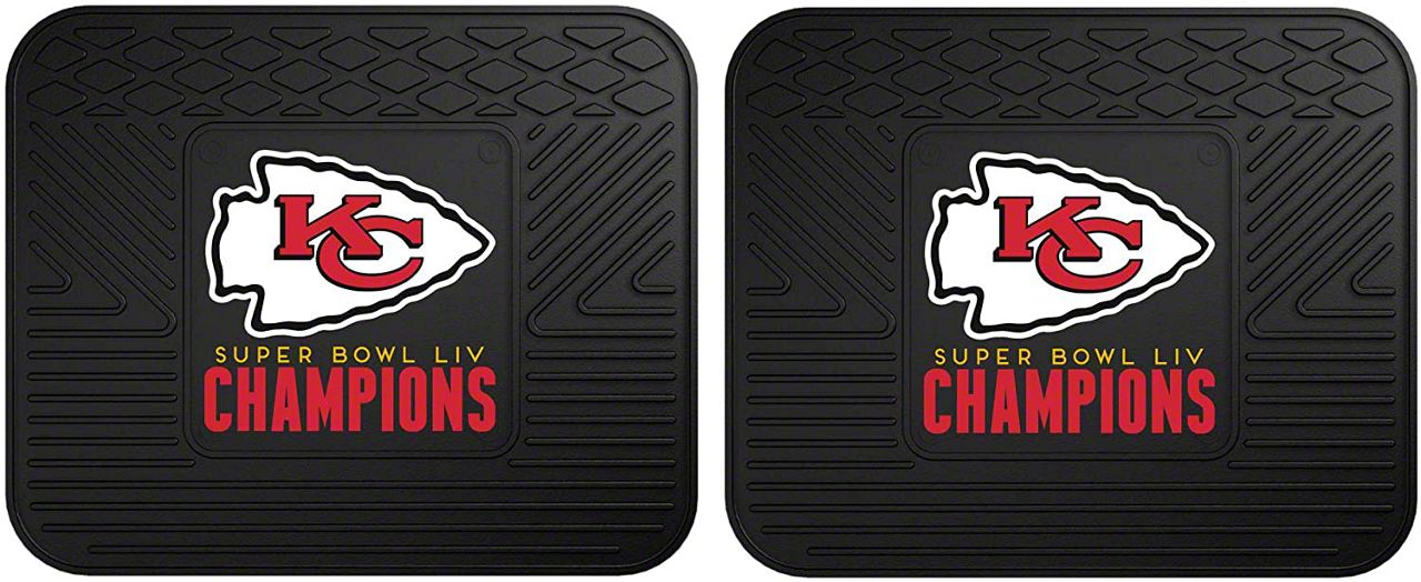 Application. These Molded Rear Floor Mats with officially-licensed Kansas City Chiefs logo feature a universal design so they will fit most makes and models of vehicles. Sold as a set of two Mats.
