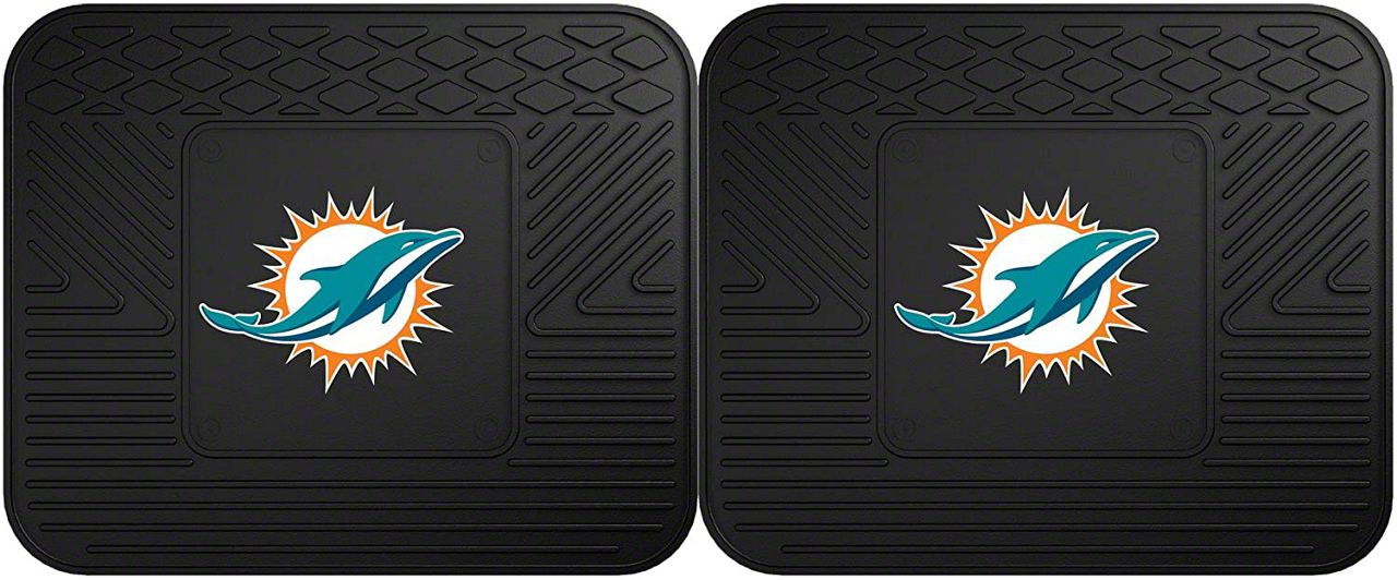 Application. These Molded Rear Floor Mats with officially-licensed Miami Dolphins logo feature a universal design so they will fit most makes and models of vehicles. Sold as a set of two Mats.
