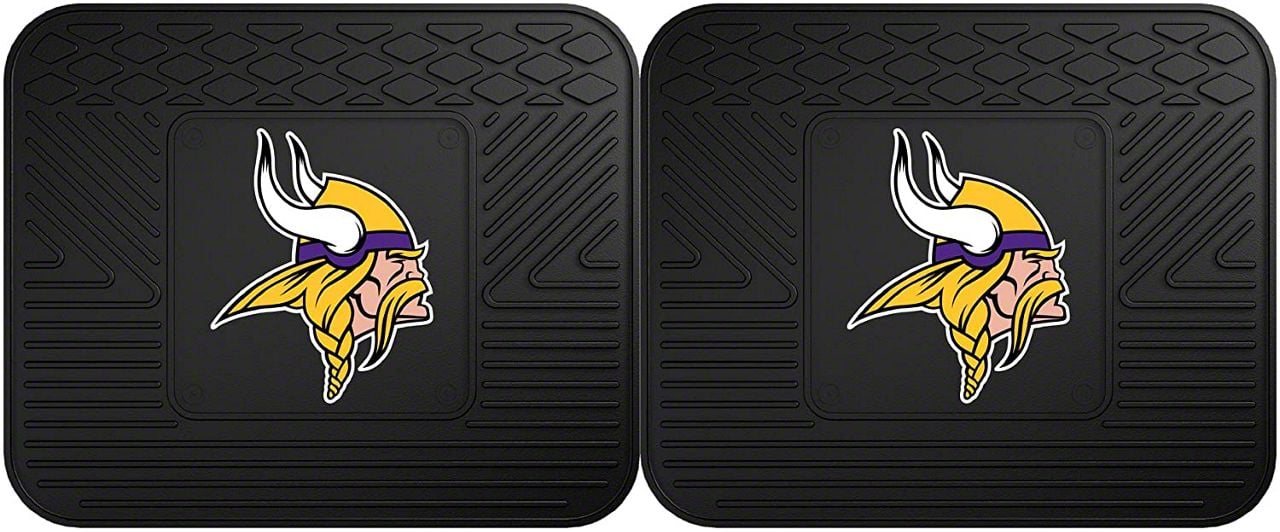 Application. These Molded Rear Floor Mats with officially-licensed Minnesota Vikings logo feature a universal design so they will fit most makes and models of vehicles. Sold as a set of two Mats.