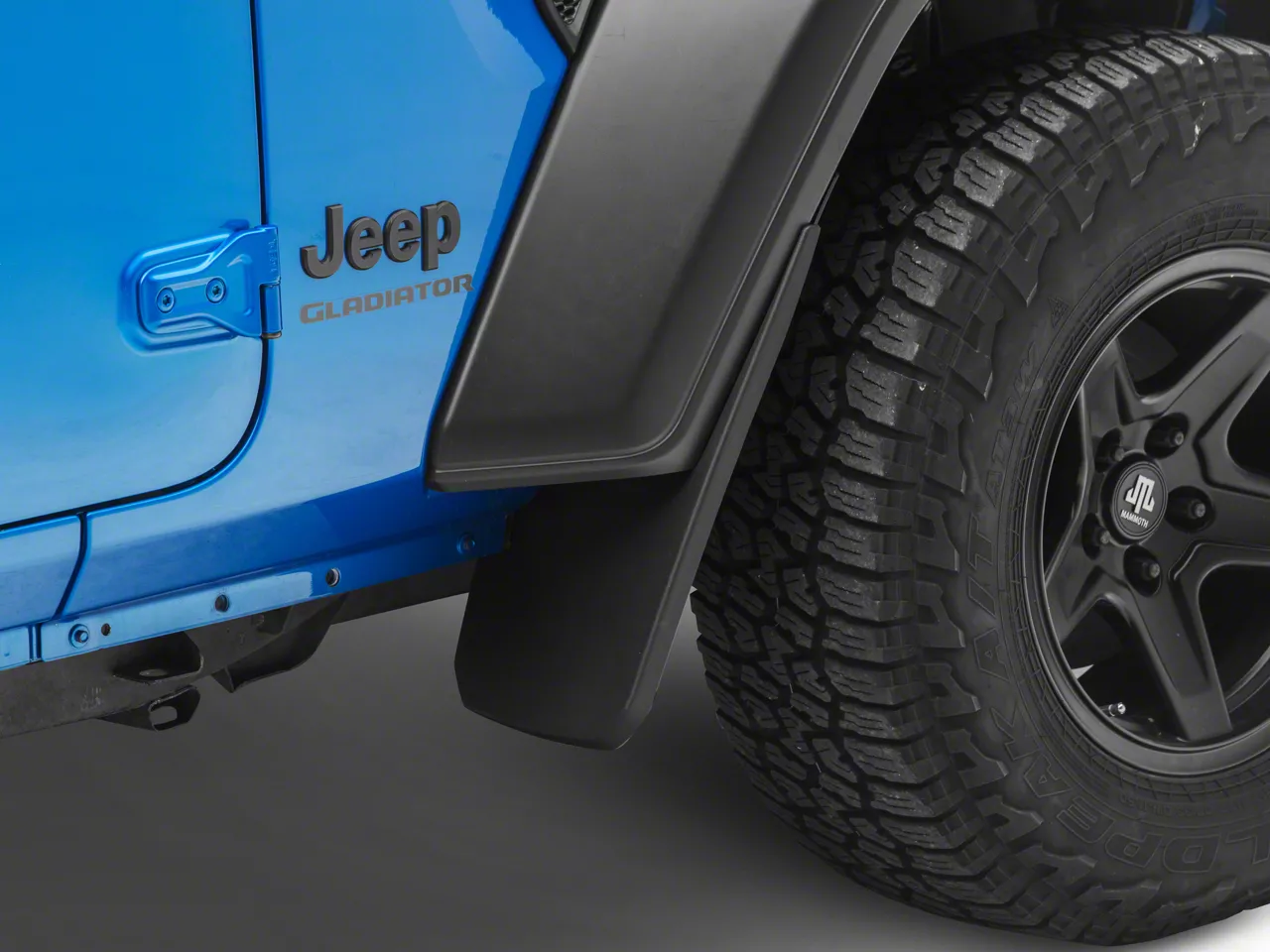 Full-Coverage Protection. These Mud Flap Splash Guards offer dependable protection for 2020-2025 Jeep Gladiator JT models. Covering both the front and rear wheel areas, they help prevent mud, rocks, and debris from damaging your vehicle’s body or paint during both off-road treks and daily driving.