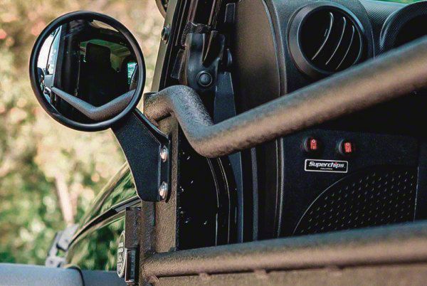 Enhanced Visibility. Transform your vehicle into the ultimate off-road ride with Offroad Tube Door Mirrors. These mirrors are designed to securely mount onto Jeep tube doors, providing a rock-solid view and improving your off-road adventure. With a 5-inch diameter convex glass, they enhance visibility and minimize blind spots, ensuring safer off-roading.