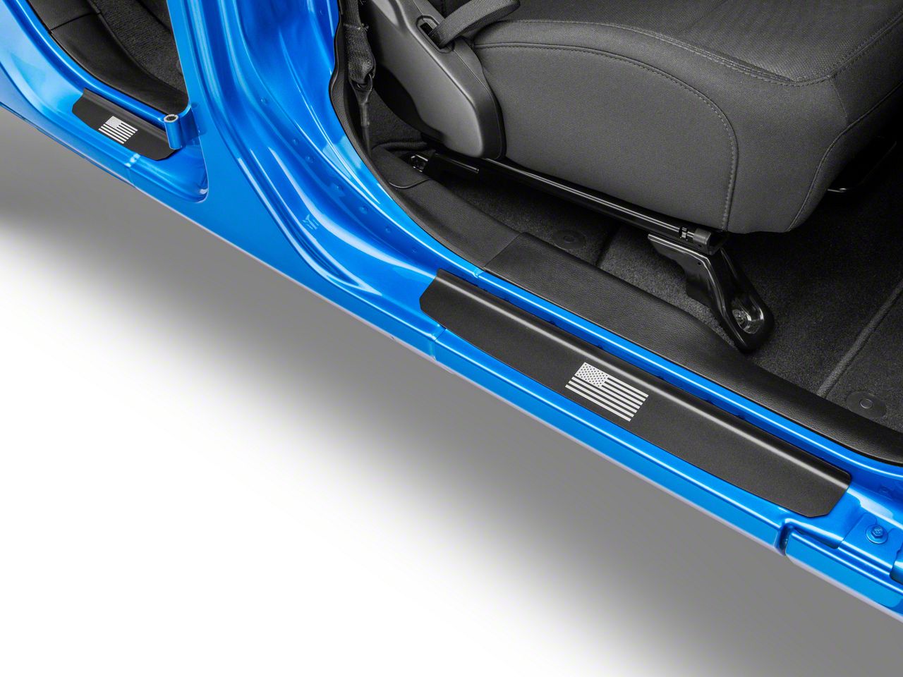 Patriotic Styling. A set of Old Glory Door Sill Guards are a great way to add patriotic styling to your Jeep's interior and bring a smile to your face every time you open the door. These Sill Guards are simple to install and easily cover up existing scratches to enhance appearance of your Jeep.