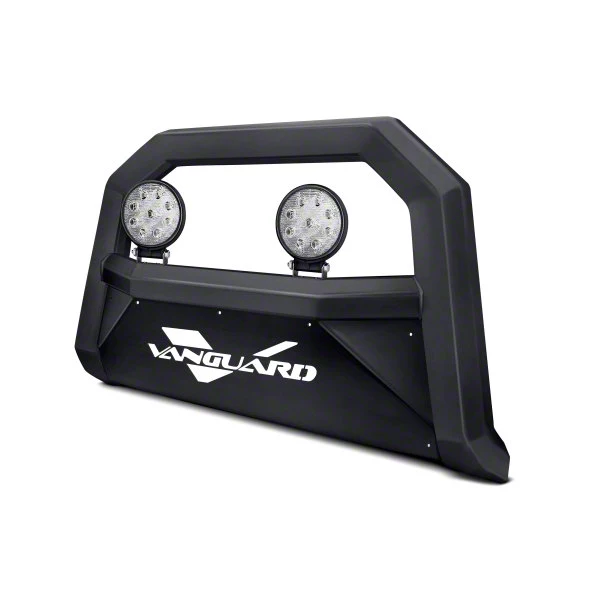 Rugged Front-End Defense. This Bull Bar is the perfect blend of aggressive styling and front-end protection for your 2020-2026 Jeep Gladiator JT. Designed with a wide stance and integrated LED lighting, it adds extra shielding against trail hazards, debris, and light collisions. The included pair of 4.50-inch round LED lights boosts visibility for nighttime driving and off-road exploration.