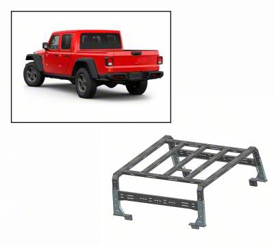 Reliable Cargo Support. Take your Jeep Gladiator JT to new heights with the Overland Utility Bed Rack; Black. This robust rack is designed to enhance your vehicle's storage capacity, allowing you to embark on adventurous journeys without worrying about space limitations.