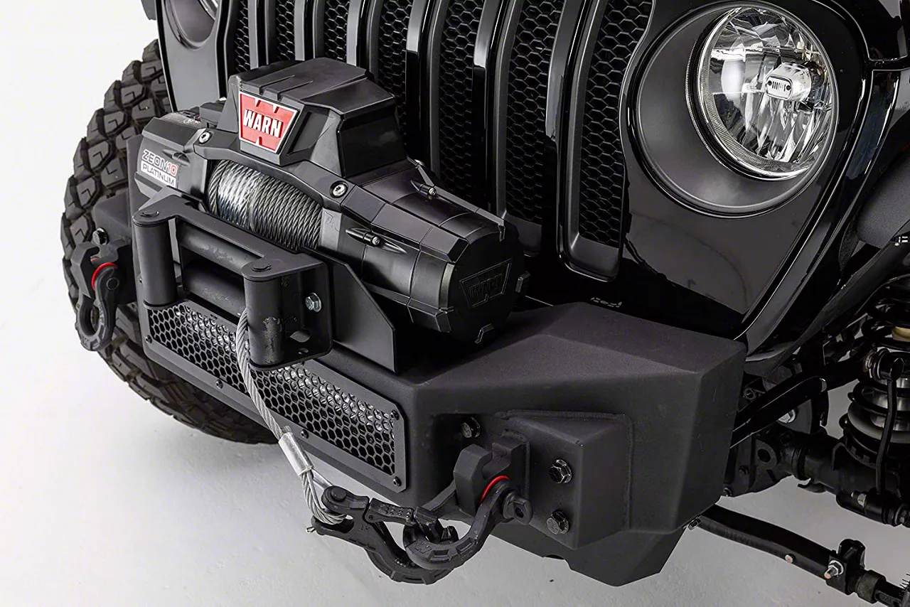 Level-Up Your Off-Road Moves. Equipping your Gladiator JT with a stubby front bumper is a great way to improve its capabilities for more intense off-road driving. As far as these bumpers go, this Rockline Front Stubby Bumper; Drilling Required, in Mild Steel and Textured Black is a perfect choice. This stubby front bumper is engineered to improve the articulation of your front tires, making it easier to crawl over extreme terrain conditions. Likewise, its 12,000-pound winch mounting plate and fully welded D-ring mounts keep you ready for any emergency recovery jobs while on the trail. Moreover, this bumper assembly is designed to complement the lines of your Jeep’s front end, giving it a bold style accent.