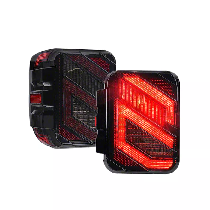 Bright and Luminous. Upgrade your 2020-2025 Jeep Gladiator JT with the Savage Series LED Tail Lights, designed to provide you with bright and luminous output while consuming minimal power. The unique S-shape design delivers an aggressive and modern appearance, setting your vehicle apart from the rest. With black housing and smoked lenses, these tail lights enhance your Jeep's aesthetic appeal while offering superior visibility and safety.