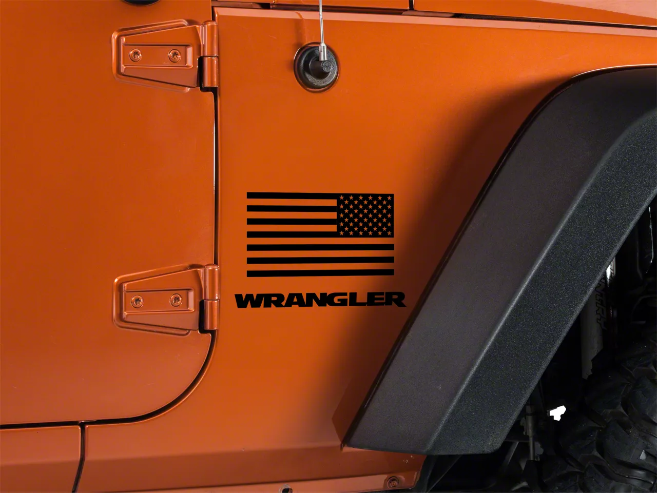 Application. This set of SEC10 Small Black American Flag Decals is designed to fit all 2020-2025 Jeep Gladiator JT models. Driver and passenger decals are included.