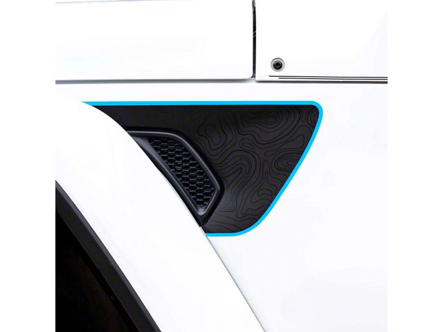 Description. Black on Black TOPO Map vehicle wrap decal that is precisely and intentionally designed to wrap the recessed part of the fender behind the front fender flares. *Pictured with Rubicon Fenders*