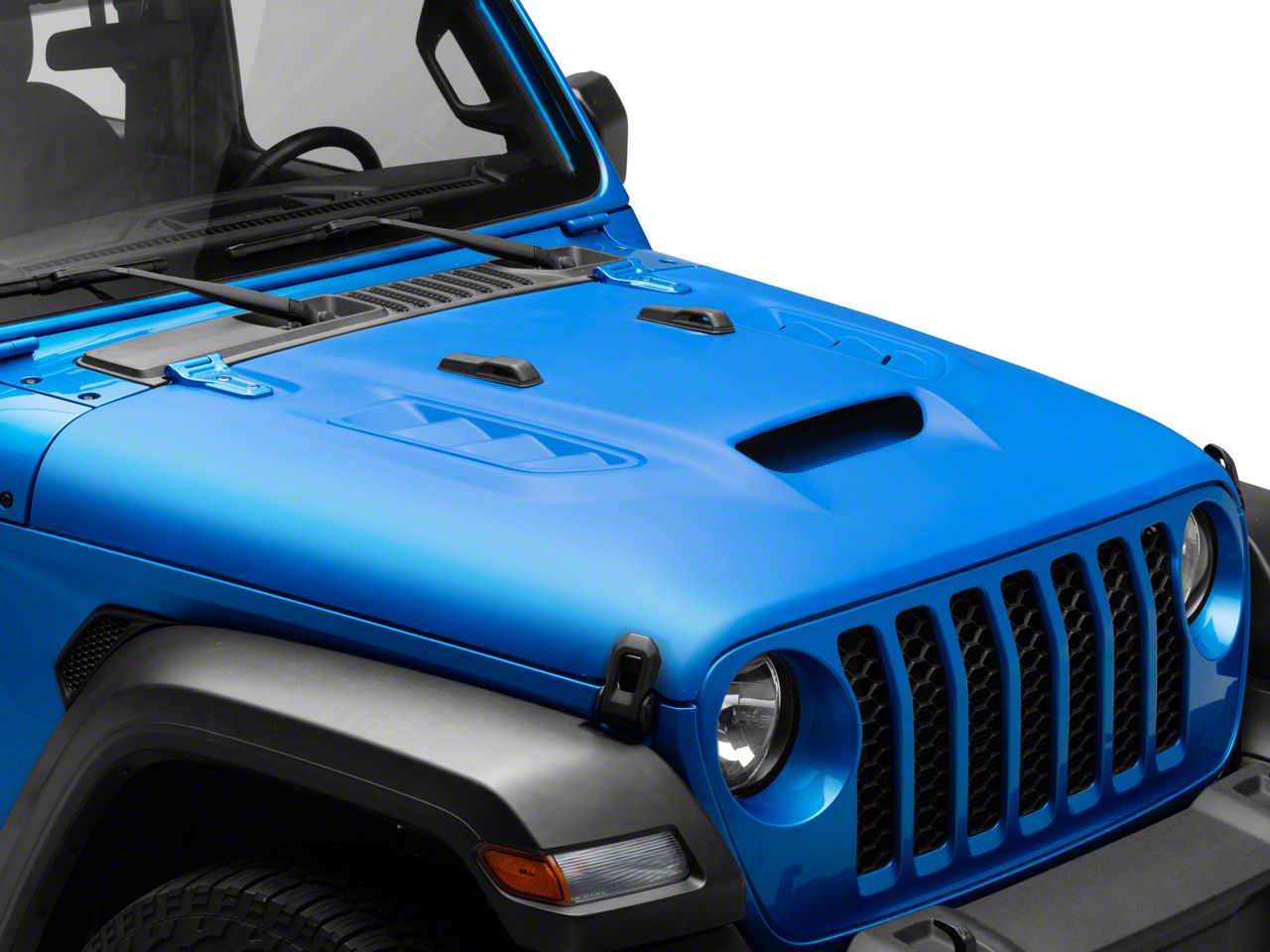 Application. The VIP Style Ram Air Hood; Unpainted fits 2020-2026 Jeep Gladiator JT.