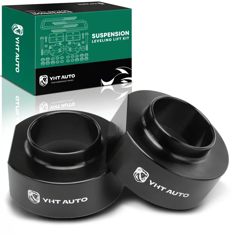 Construction and Appearance. Crafted from high-strength aluminum, this Front Leveling Lift Kit ensures durability and resistance to deformation under extreme conditions. The spacers feature an anodized finish, offering superior corrosion resistance and a sleek appearance that complements the vehicle's undercarriage. Precision machining guarantees accurate fitment and alignment during installation.
